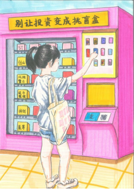 点评:作品将投资理财与时下流行的盲盒进行对比,理性投资理念跃然纸上。